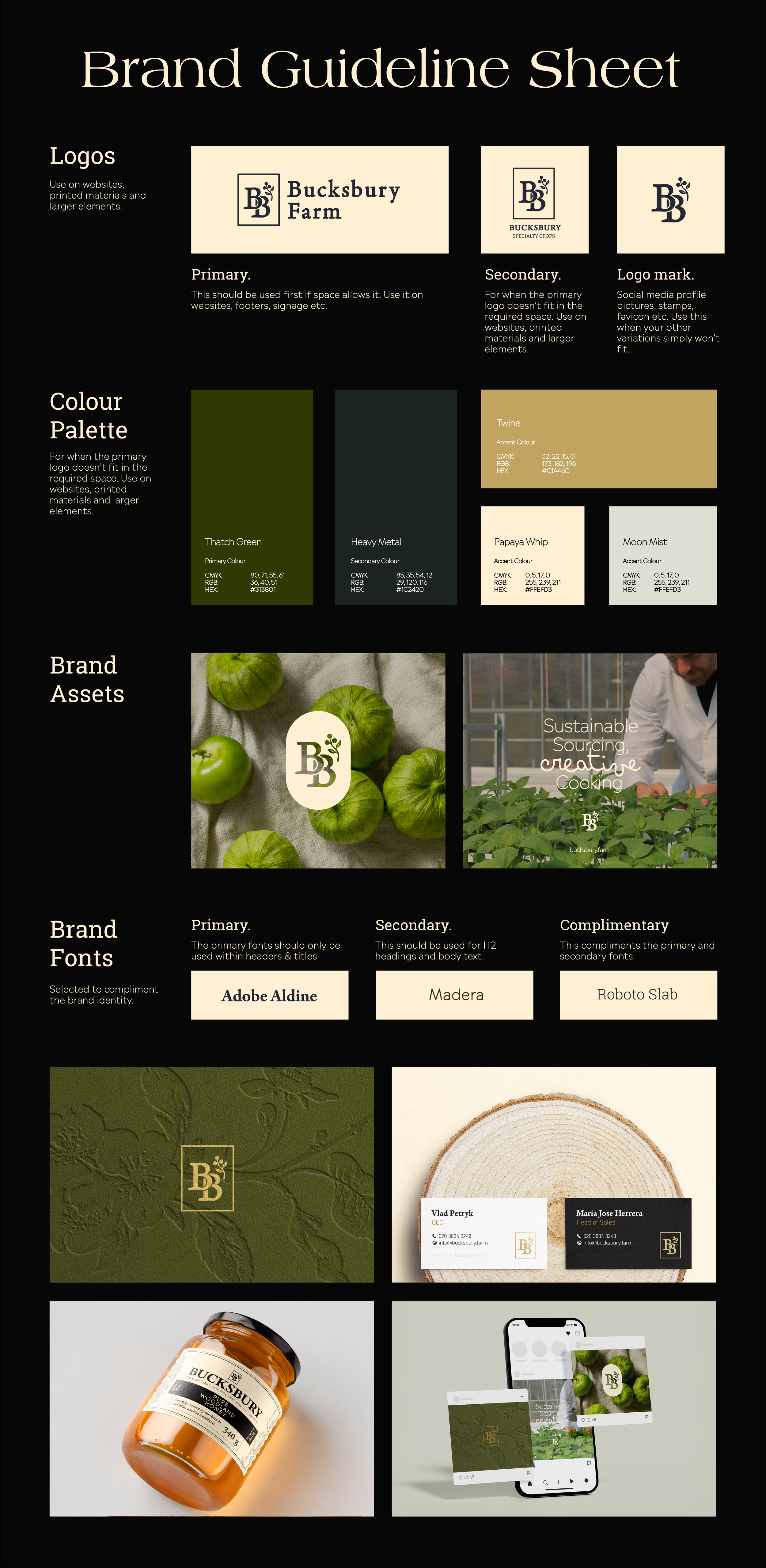 For Bucksbury Farm, I built a brand that marries luxury with genuine care for its centuries-old woodland. I crafted a visual identity inspired by the forest’s textures, forms and, natural palette to convey both elegance and authenticity. From the logo to the website layout every element reinforces the farm’s deep connection to its ancient trees.